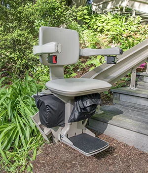 Count on Bruno’s Elite, the top-selling curved outdoor stairlift in North America. With its handcrafted rail, Bruno’s Elite curved outdoor stairlift precisely matches the elevation and angles of your staircase. Relax outdoors with an easy-to-use Elite curved outdoor stairlift – built specifically for your home and varying weather conditions.